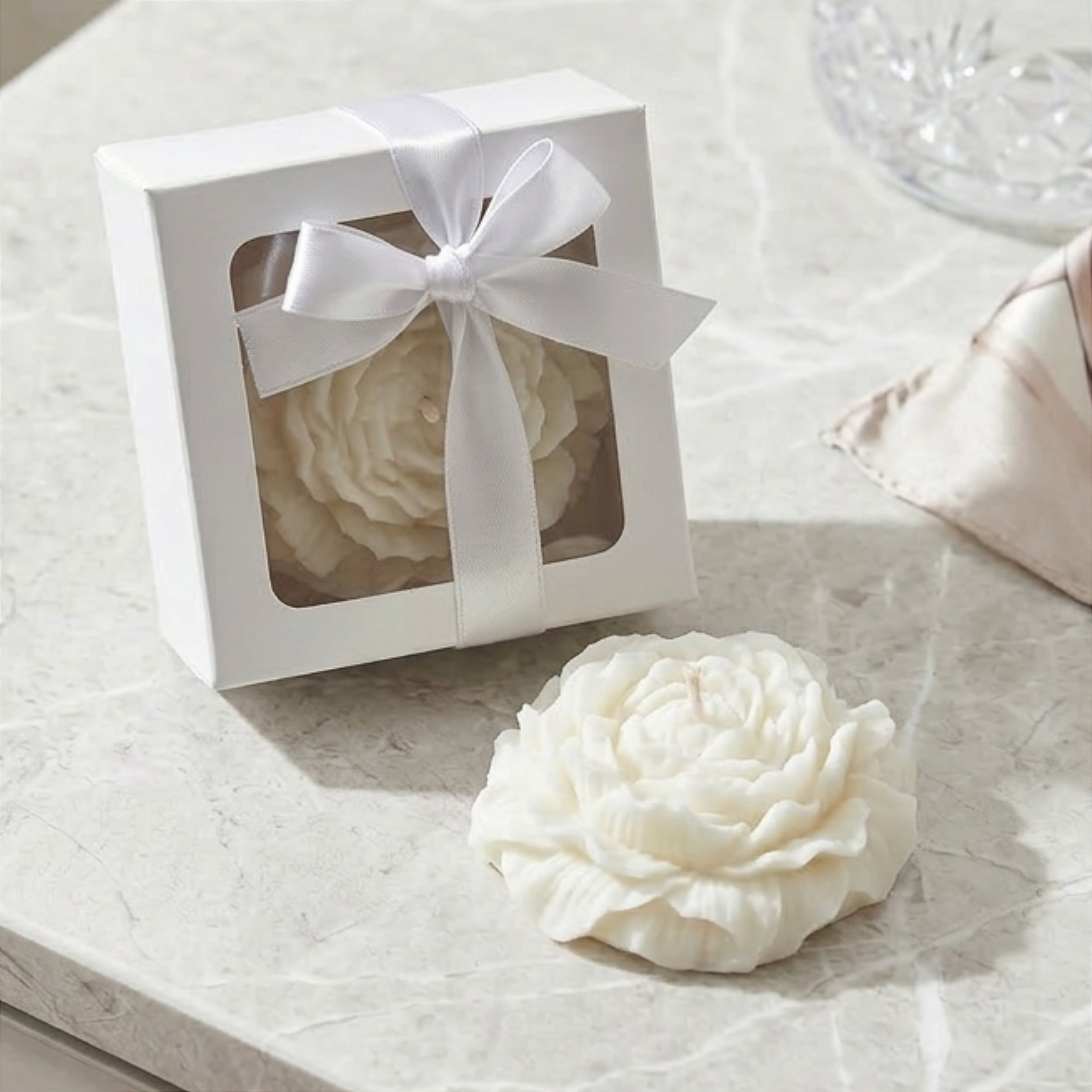 A vela aromática em formato de peônia é moldada para replicar a delicadeza das pétalas de uma peônia, esta vela não apenas ilumina o ambiente, mas também exala um perfume suave e refrescante de flores de cerejeira e peônia. Ideal para perfumar e decorar ambientes, lembrancinhas para o dia das mães, dia da Mulher, casamento entre outros eventos.